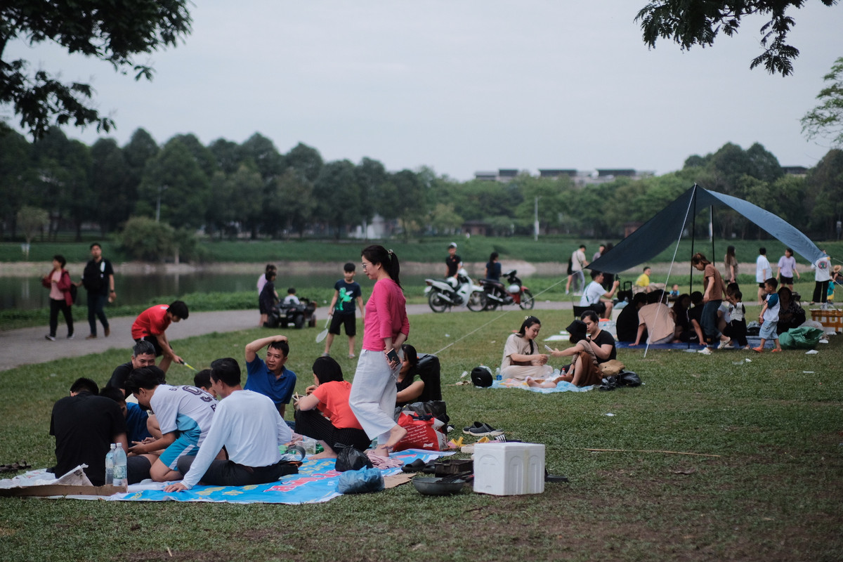 Chị Đặng Thị Thảo (quận Hoàng Mai, Hà Nội ) cho biết: "Dịp lễ 30/4 và 1/5 năm nay kéo dài nên tôi và các bạn đã chọn công viên Yên Sở để cắm trại. Không gian ngoài trời nhiều cây xanh, thời tiết mát mẻ khiến cả nhóm thấy rất thoải mái”.