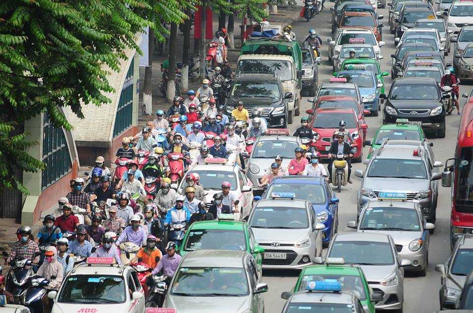 | Dòng phương tiện nối dài từ hướng siêu thị Big C đến lối ra cao tốc Pháp Vân - Cầu Giẽ. |