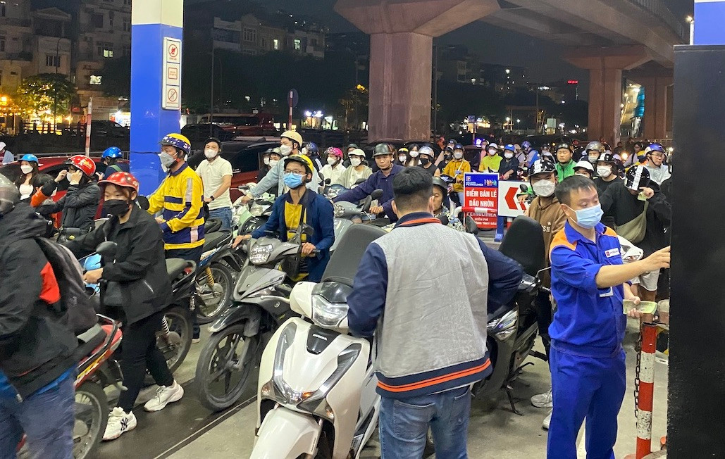 21h30, dòng người liên tục dồn về cây xăng gần Ngã Tư Sở.
