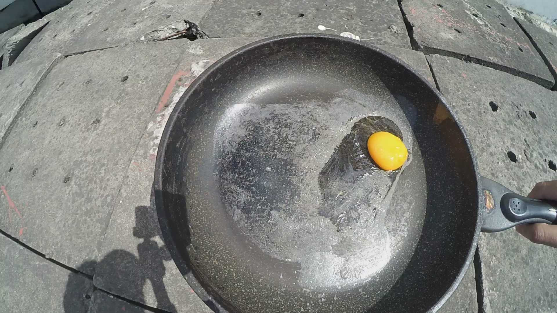 Theo ghi nhận của phóng viên, nhiệt độ ngày 3/6 không cao bằng ngày 2/6 và cũng có nhiều mây hơn nên sau thực nghiệm trứng không chín hoàn toàn, chỉ có lòng trắng chín hẳn, khô như rán trên bếp còn lòng đỏ thì chuyển sang dạng sánh, sệt.