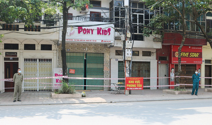 Lực lượng chức năng tổ chức phong tỏa khu vực tổ dân phố nơi có ca F0. (Ảnh: UBND huyện Quốc Oai)