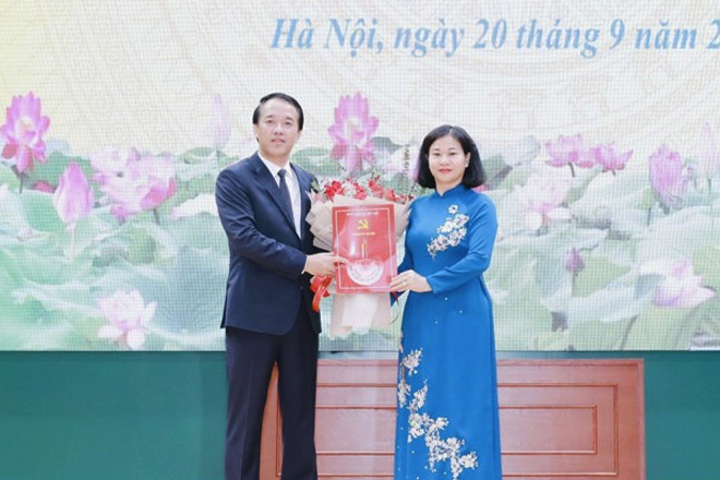 Phó Bí thư Thường trực Thành ủy Hà Nội Nguyễn Thị Tuyến trao quyết định cho ông Lưu Ngọc Hà. (Ảnh: Kinh tế đô thị).