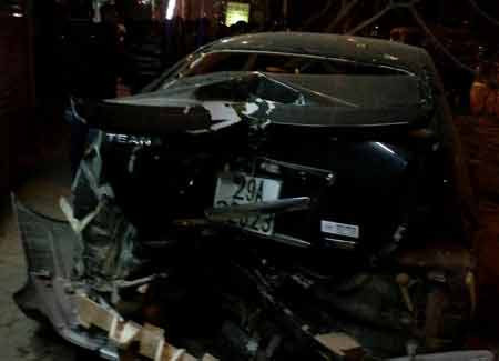 Hà Nội: Ôtô phóng như bay, húc tung gốc cây