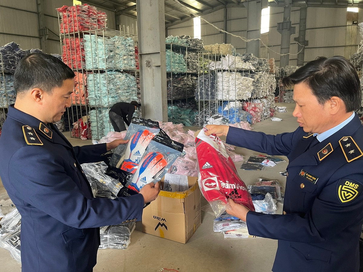 Tại đây, đoàn kiểm tra phát hiện gần 30.000 bộ quần áo, giày, găng tay có dấu hiệu giả mạo nhãn hiệu adidas với mẫu mã quần áo của một số tuyển quốc gia như Bỉ, Nhật Bản và các câu lạc bộ Manchester United, Tottenham Hotspur... đang được bày bán.