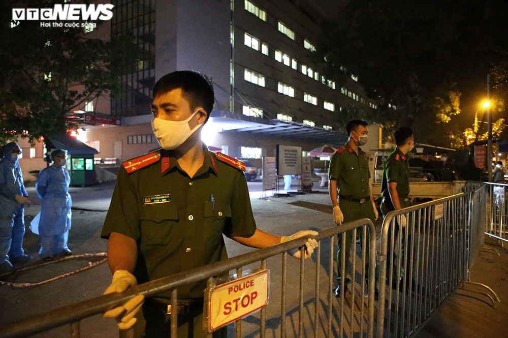 22h00, lực lượng Công an quận Bắc Từ Liêm thiết lập hàng rào sắt bên ngoài cổng bệnh viện để kiểm soát người ra, vào.