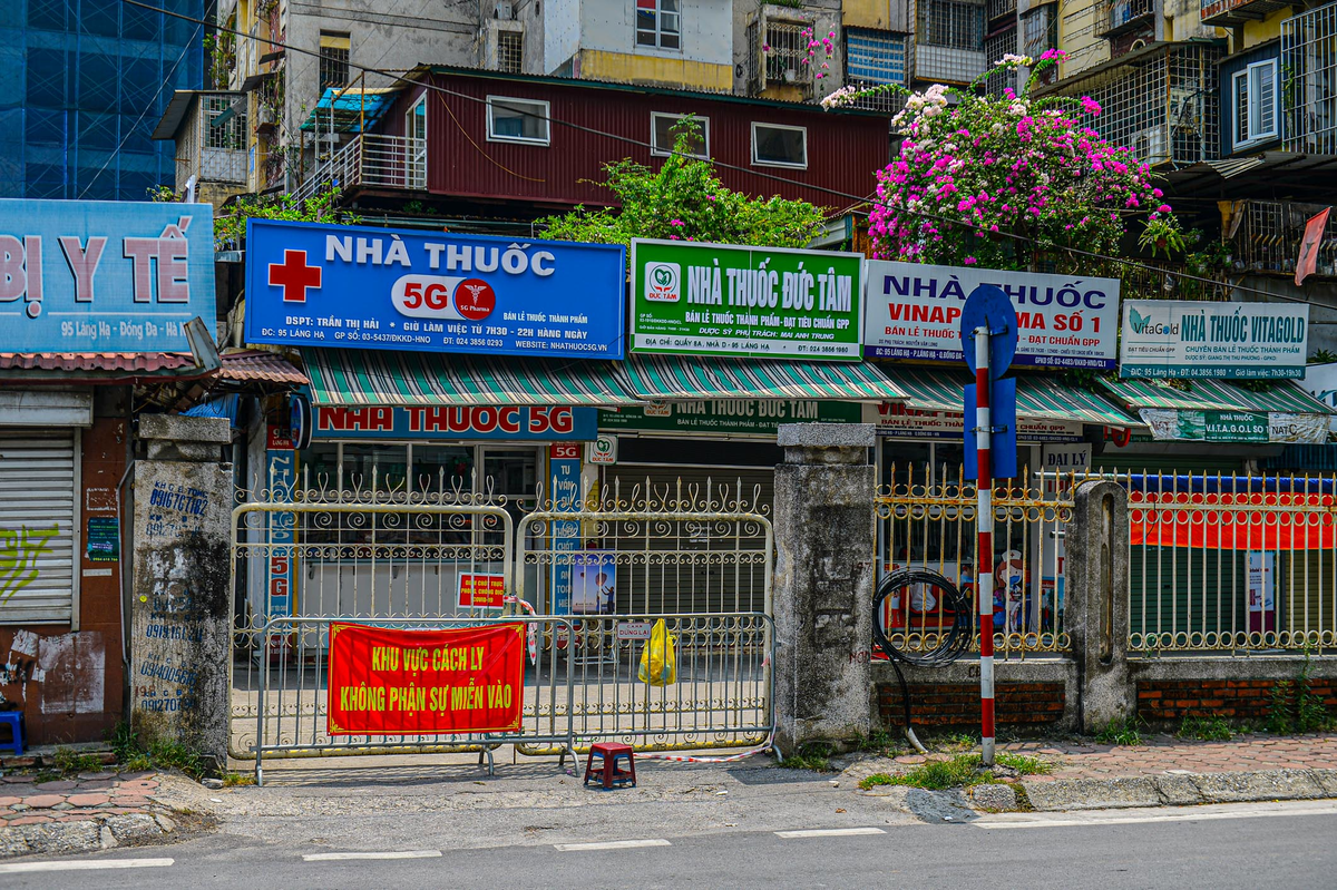 Từ tối 19/7, lực lượng chức năng quận Đống Đa tạm thời phong toả hiệu thuốc Đức Tâm ở số 95 Láng Hạ và các cửa hàng bên cạnh sau khi ghi nhận 3 trường hợp dương tính với SARS-CoV-2.