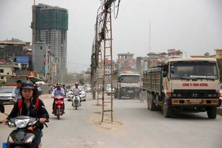 Một trong những hình ảnh (đoạn Cầu Diễn - Nhổn) khiến đường 32 được mệnh danh là "con đường đau khổ" (Ảnh: VNE)