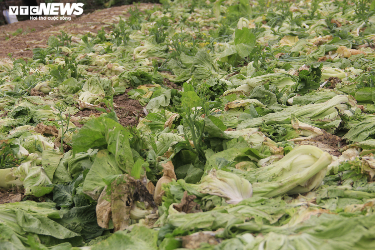 Rau chất đống, bị vứt bỏ ngay trên đồng ruộng, ngày một mục nát.
