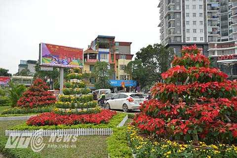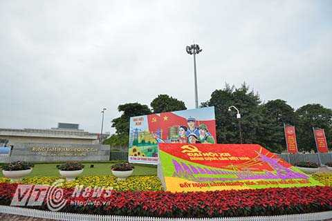 | Các tuyến đường xung quanh trung tâm hội nghị quốc gia được trang hoàng với những cổng chào cờ hoa rực rỡ |