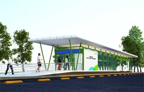 Sở Giao thông vận tải Hà Nội vừa khởi công xây dựng nhà chờ xe buýt mẫu đầu tiên trong chuỗi nhà chờ hợp phần xe buýt nhanh Hanoi BRT.