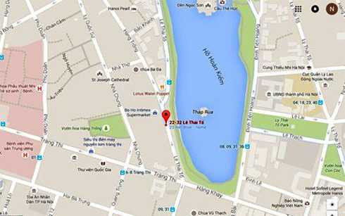 ![]() Điểm đỏ đánh dầu vị trí công trình khách sạn tại số 22-32 phố Lê Thái Tổ, quận Hoàn Kiếm. |