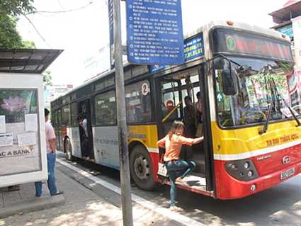 | Xe buýt vẫn là phương tiện di chuyển chính của học sinh sinh viên, người lao động - Ảnh: Minh Sơn/Vietnam+ |