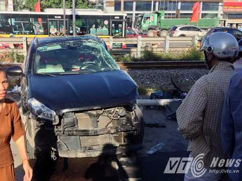 Cú va chạm mạnh khiến xe ôtô bị lật ngược 180 độ, sườn bên trái xe ôtô bị đâm lún hẳn vào bên trong, toàn bộ phần mũi xe bị vỡ hoàn toàn, cửa kính bên trái bị vỡ tung. Cú đâm cũng khiến một đèn báo đường sắt bị húc văng.
