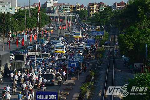 | Tuyến đường Ngọc Hồi - Giải Phóng đoạn qua cổng chùa Tứ Kỳ bị ùn tắc cục bộ |