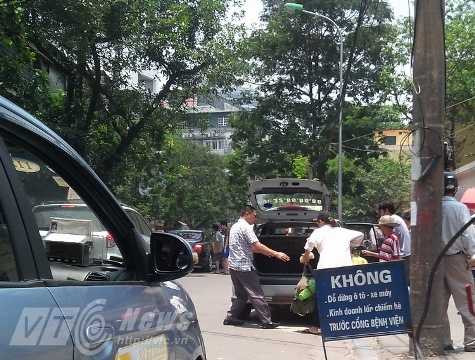 Theo ghi nhận của PV tại cổng các bệnh Việt Đức, bệnh viên Phụ sản Trung Ương, bệnh viện K… nhiều taxi dừng đỗ đón, trả khách ngang nhiên. Một số tài xế còn cố tình đi chậm, thò đầu ra ngoài để vẫy khách. Hàng loạt taxi đi chậm, dàn hàng khiến giao thông bị hỗn loạn trước cổng bệnh viện, đặc biệt vào giờ cao điểm.