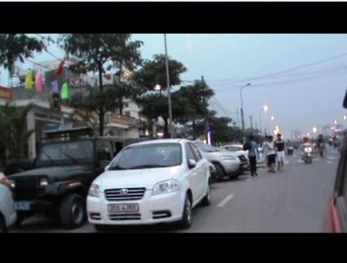 Để chúc mừng ngày thành lập Công an phường Minh Khai – quận Bắc Từ Liêm – Hà Nội, chiều tối 31/3, khách đến ăn uống, ô tô đỗ chật đường quốc lộ.