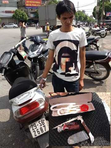 Tiếp tục khám xét, tổ công tác phát hiện dưới tấm lót để chân của chiếc xe máy một túi nilon nhỏ, bên trong chứa chất tinh thể màu trắng, nghi là ma túy đá.