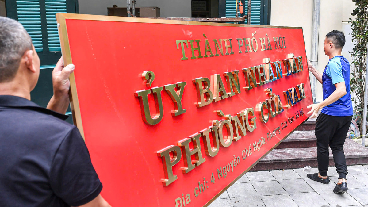 Chiều 28/6, nhiều trụ sở xã, phường trên địa bàn Hà Nội đã bắt đầu gắn biển tên mới, chuẩn bị cho thời điểm chính thức vận hành mô hình chính quyền đô thị với 126 đơn vị hành chính cấp xã từ ngày 1/7/2025.