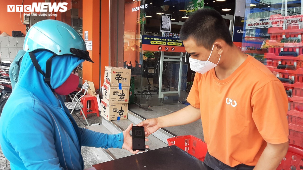 Kiểm tra thông tin dịch tễ của người mua hàng ở một siêu thị.