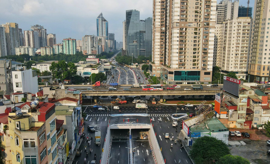 Hà Nội tổ chức điều chỉnh lại giao thông trên nút giao Tố Hữu - Lê Văn Lương - Khuất Duy Tiến. (Ảnh: Thạch Thảo)