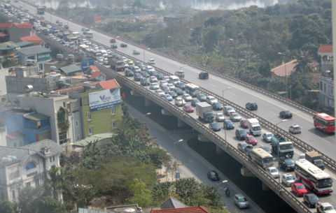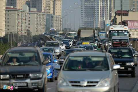 | Các phương tiện chen chúc ở đường trên cao. Ảnh: Dân Trí |