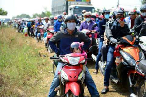 Cũng trong chiều nay, hầu hết các ngả đường dẫn vào TP Hồ Chí Minh cũng quá tải vì người dân ùn ùn đổ về sau kỳ nghỉ Tết.