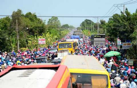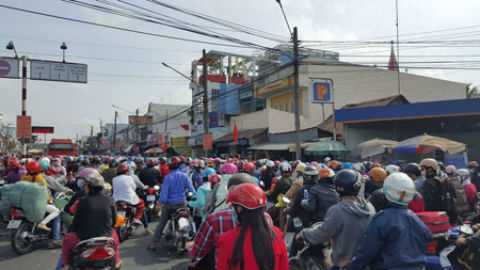 | Biển người đổ về TP HCM mùng 6 tết gây cảnh kẹt xe. Ảnh: Tuổi Trẻ |