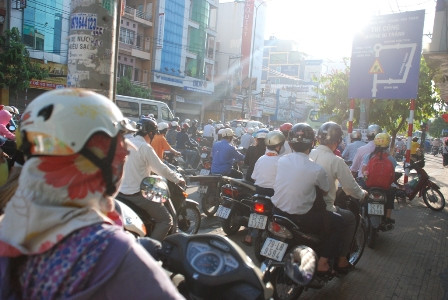 Còn trên tuyến đường Cộng Hòa (Tân Bình) nhất là đoạn qua giao lộ với đường Hoàng Hoa Thám tình hình giao thông trở nên “căng thẳng” các phương tiện ken đặc, xếp hàng chen lấn nhaudo ảnh hưởng của công trình xây dựng cầu vượt thép khu vực Cộng Hòa- Hoàng Hoa Thám.