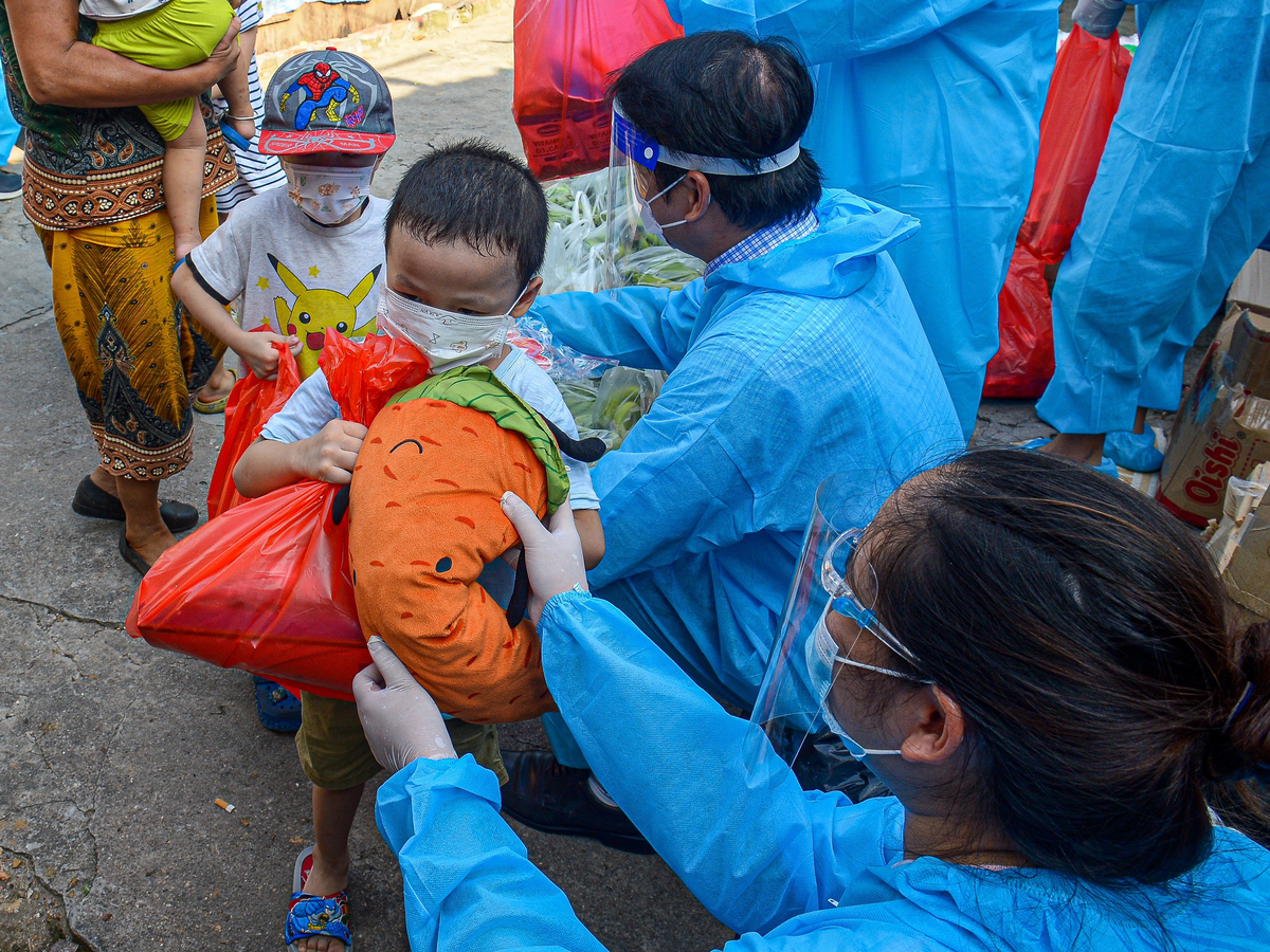 Bà Đinh Thị Hiền (62 tuổi, là lao động tự do đang sinh sống ở xóm trọ Nhà Bè) chia sẻ: "Suốt hơn 2 tháng nay vì dịch bệnh nên tôi không có thu nhập, phải đi vay tạm gạo của hàng xóm để hai bà cháu có thể nuôi nhau đợt khó khăn này. Sáng nay khi nghe được tin đoàn đến phát quà Trung thu cho bọn trẻ, ngoài ra còn có nhu yếu phẩm cho lao động nghèo tôi mừng lắm, con bé cứ háo hức vì từ nhỏ đến giờ nó chưa được nhận quà Trung thu bao giờ".