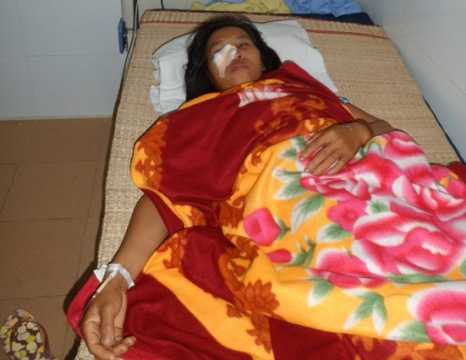 Chị Huệ hiện đang cấp cứu tại bệnh viện K74 thị xã Phúc Yên (Vĩnh Phúc) với nhiều vết thương ở vùng đầu và tay chân.