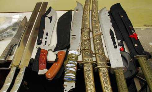| Hung khí bị công an an Hà Nội thu giữ từ một số vụ phạm pháp hình sự. |