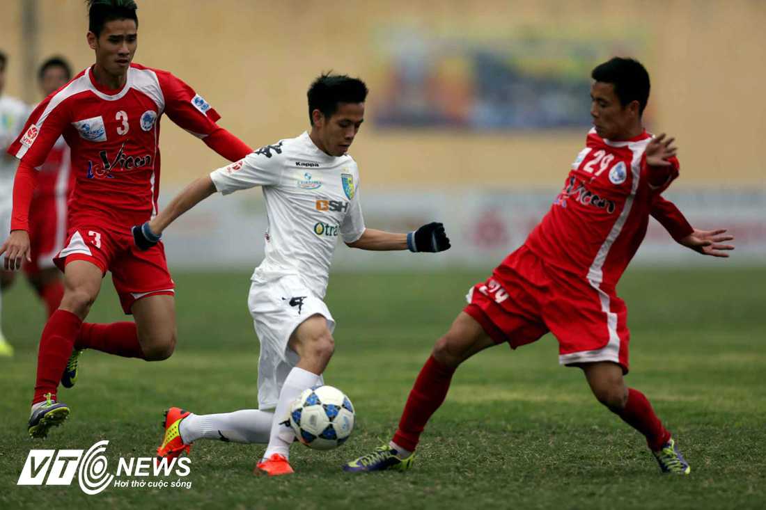 69' KHÔNG VÀO... Rất tiếc cho đội trưởng Minh Châu. Anh đi bóng qua hai trung vệ Hà Nội T&T rồi sút bóng quyết đoán vào góc gần. Thủ thành Dương Hồng Sơn đã cảnh giác, khép góc cứu thua.