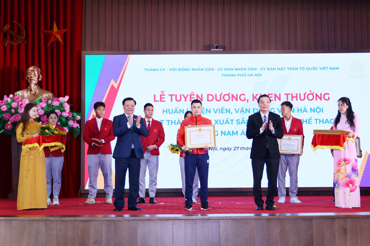 Phát biểu chỉ đạo, Bí thư Thành uỷ Hà Nội Đinh Tiến Dũng nhấn mạnh, thành tích của Thể thao Hà Nội tại SEA Games 31 chính là những phần thưởng cao quý, xứng đáng đối với sự nỗ lực, cố gắng, quyết tâm, kiên trì, bền bỉ không ngừng của các huấn luyện viên, vận động viên Hà Nội; là kết quả của sự quan tâm, ủng hộ, tạo điều kiện hết mình của gia đình và người thân các vận động viên, huấn luyện viên.