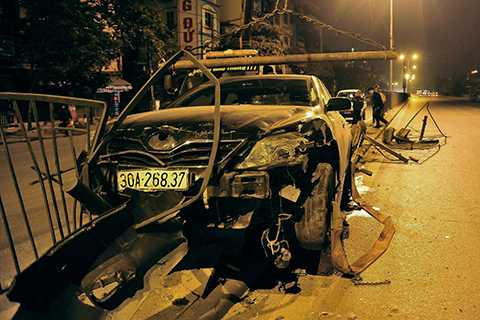 Vụ tai nạn xảy ra khi chiếc xe ôtô hiệu Toyota Camry mang BKS 30A – 268.37 đang lưu thông theo hướng đường Giải Phóng về trung tâm Thành phố, khi đi ngang qua số nhà 1065 đường Giải Phóng thì bất ngờ mất lái lao vào dải phân cách ở giữa đường.