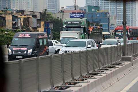 | Chiều từ Khuất Duy Tiến - Nguyễn Trãi đi Pháp Vân tắc nghẽn nghiêm trọng. |