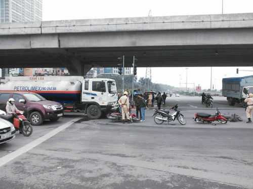 Một số nhân chứng cho biết, thời điểm trên, các phương tiện đang đỗ chờ đèn đỏ tại ngã tư hướng Khuất Duy Tiến đi Phạm Hùng thì bất ngờ một chiếc xe bồn chở xăng BKS 29C – 242.65 từ phía sau lao lên đâm dồn vào 9 chiếc xe máy.