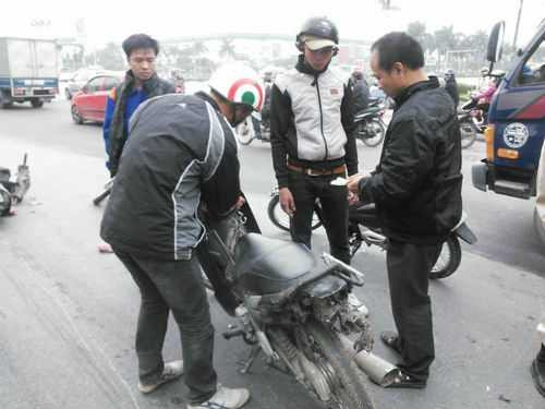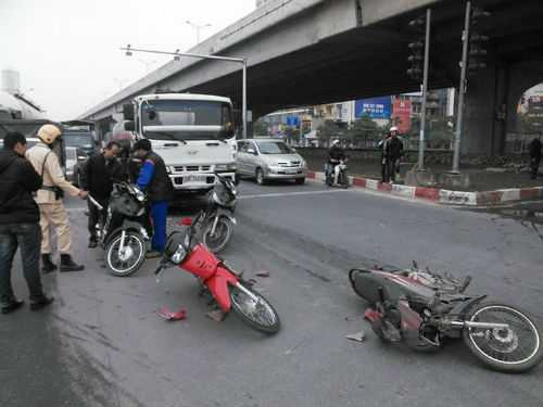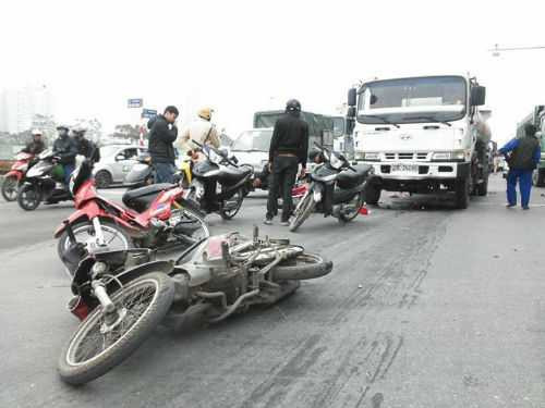 | Xe bồn chở xăng đâm 9 chiếc xe máy đang chờ đèn đỏ. |