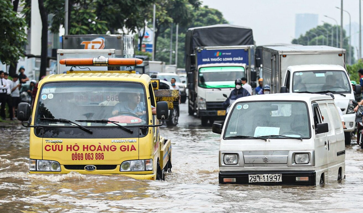 "Mưa lớn, chuyện ngập úng ở khu vực này xảy ra thường xuyên như cơm bữa, có khi chờ cả nửa ngày vẫn chưa thể di chuyển về nhà", chị Mỹ (xã An Khánh, huyện Hoài Đức) chia sẻ.