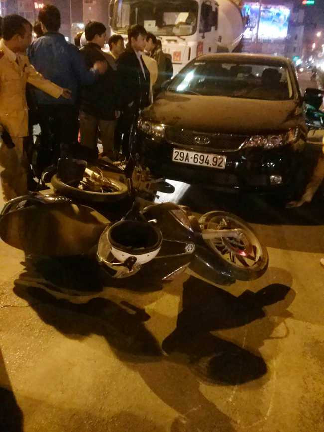 Do bị bất ngờ đâm từ phía đằng sau nên một số xe máy bị húc bật tung lên phía trước. Theo quan sát của phóng viên, tại hiện trường xảy ra tai nạn có 3 xe máy, mang BKS 88K4-5110, 88L1-11.595 và 29X7-071.71 nằm ngổn ngang ra đường.