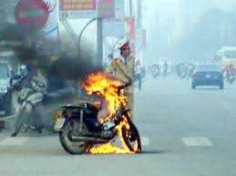 (VTC News) – Kịch bản cháy xe máy đã lặp lại, trong lúc “bon bon” trên phố, chiếc xe máy bỗng dưng bốc khói rồi cháy ngùn ngụt ngay sau đó.
