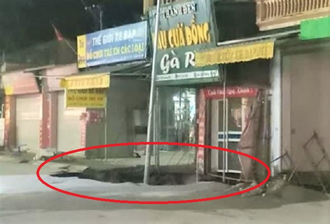 Tối 6/4, ông Vũ Văn Mạnh - Chủ tịch xã Quảng Bị (huyện Chương Mỹ, TP Hà Nội) cho biết, trên đường tỉnh lộ 419 (đoạn thuộc địa bàn xã Quảng Bị) vừa xuất hiện "hố tử thần" sâu 5m, khoảng rộng 30m2, ngay trước cửa nhà dân.
