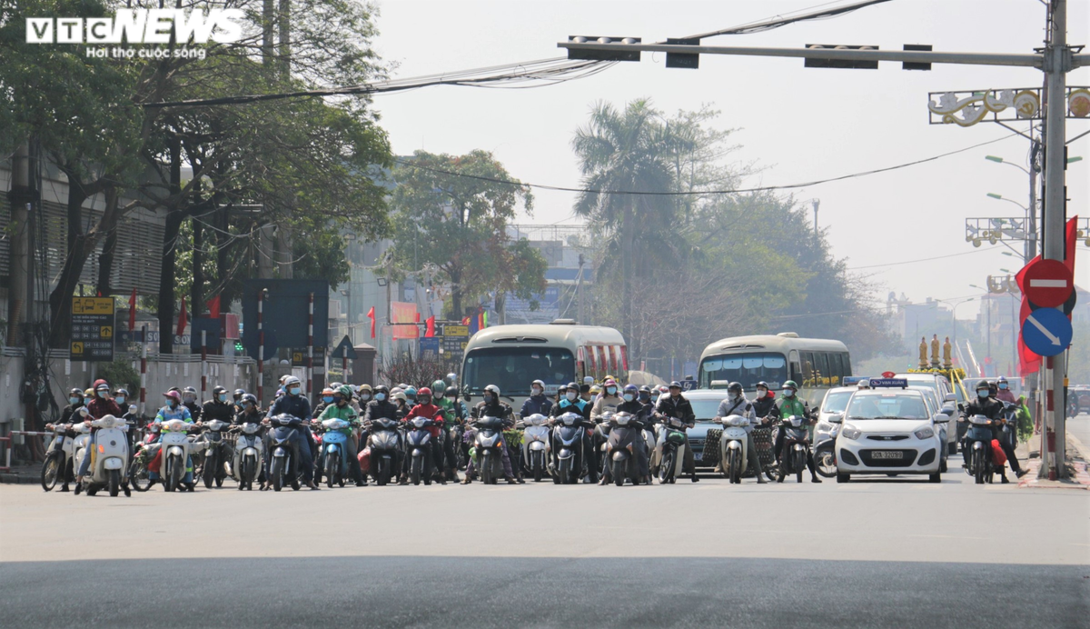 Người dân trở lại Hà Nội sau kỳ nghỉ Tết Nguyên đán. (Ảnh: Tùng Lâm)