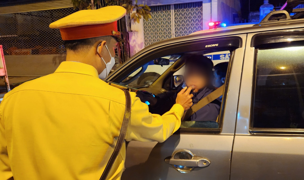 Lực lượng CSGT đo nồng độ cồn. (Ảnh minh họa)