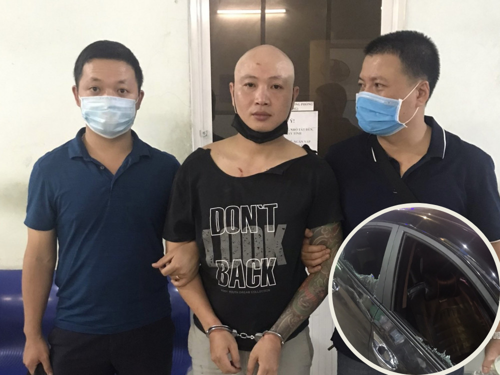 Lực lượng chức năng phải phá cửa kính xe ô tô để vây bắt Nguyễn Văn Sơn. (Ảnh: T.T)