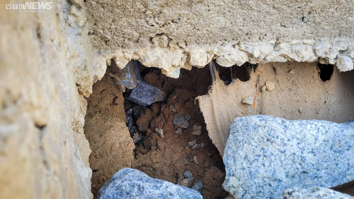Những chiếc hố được tạo nên sau khi đá kè sụt xuống.