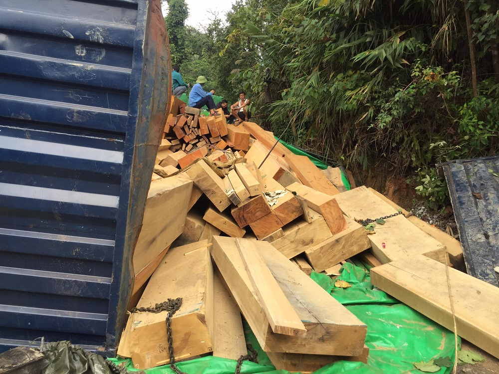 Do vị trí xe bị lật là đoạn cua gấp và hẹp nên việc di dời số gỗ trên xe gặp nạn rất khó khăn. Điều này là nguyên nhân khiến giao thông bị tắc nghẽn nhiều giờ đồng hồ.