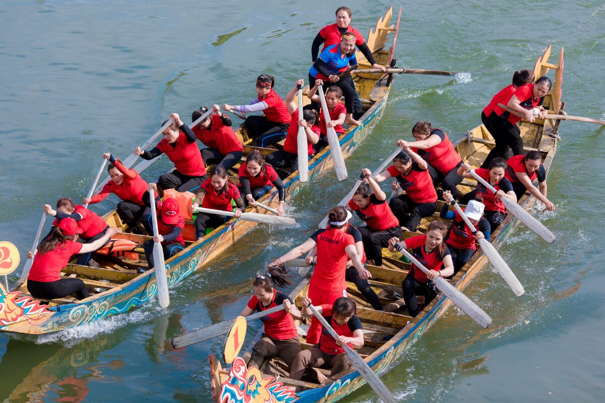 Trong cuộc đua, các tay chèo nữ thể hiện sức khoẻ dẻo dai và nắm khá vững các kỹ thuật chèo lái.