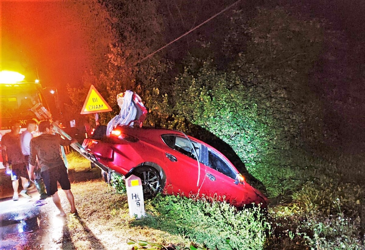Cụ thể, khoảng 2h cùng ngày, tại km 9+600 ĐT 548 thuộc xã Thiên Lộc, xe ô tô 5 chỗ mang BKS 38A-45713 do tài xế Hoàng Đ. (SN 1987, trú xã Phù Lưu, huyện Lộc Hà) bất ngờ mất lái, lao xuống hồ nước bên đường.
