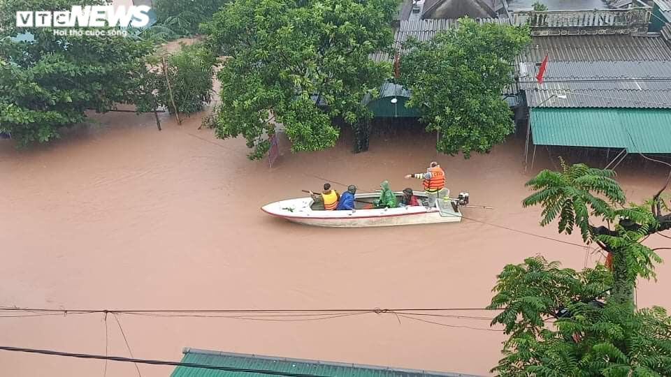 Lực lượng cứu hộ đến từng nhà đưa người dân đi sơ tán.