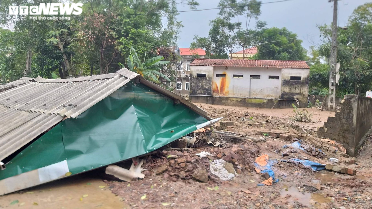 Nhà cửa tan hoang, bùn đất chất đống sau mưa lũ.